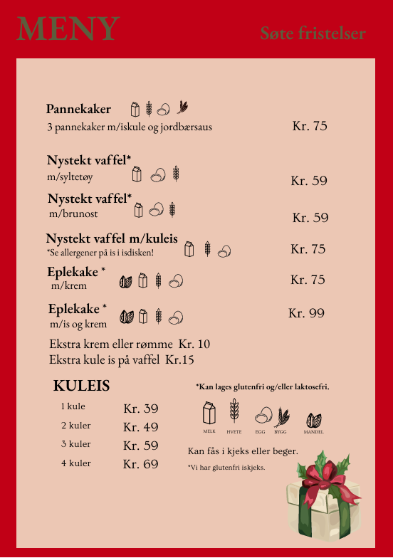 Midt i bygget, lokalisert sammen med vår kjøkkenavdeling, finner du vår koselige kafé Noe Attåt. Her kan du nyte en god lunsj, kaffe & vaffel eller en is. Vi holder åpent mandag-søndag. Velkommen til oss!