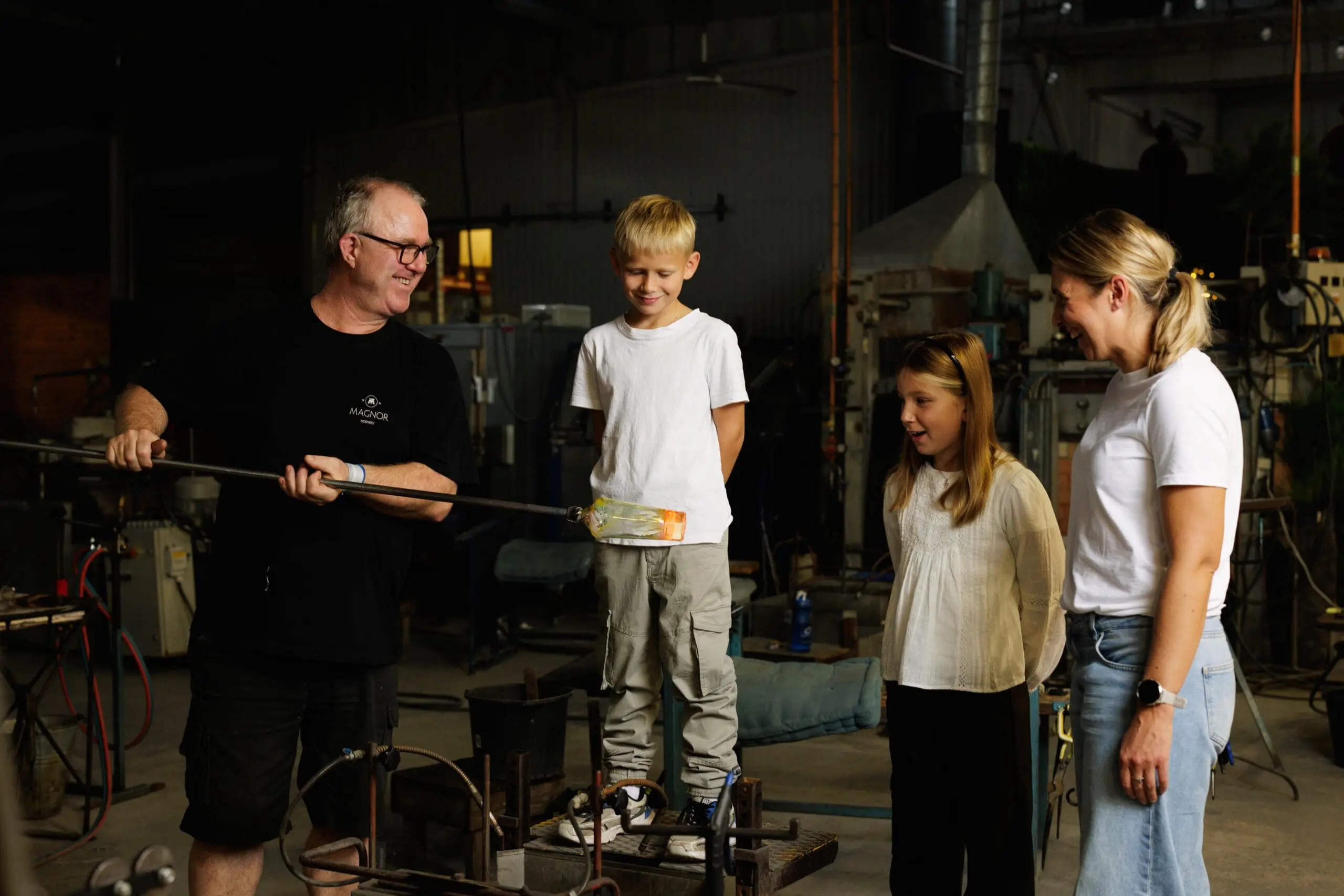 Ta med familie og venner, og opplev den magiske prosessen med levende glass.